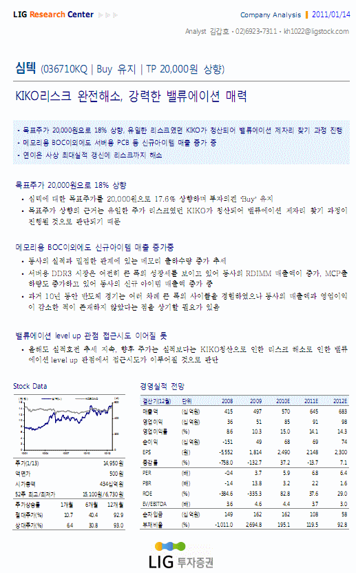 KIKO리스크 완전해소, 강력한 밸류에이션 매력 - LIG투자증권