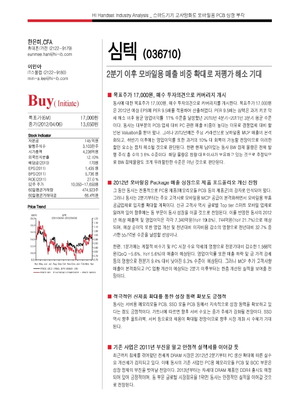 2분기 이후 모바일용 매출 비중 확대로 저평가 해소 기대 - 하이투자증권