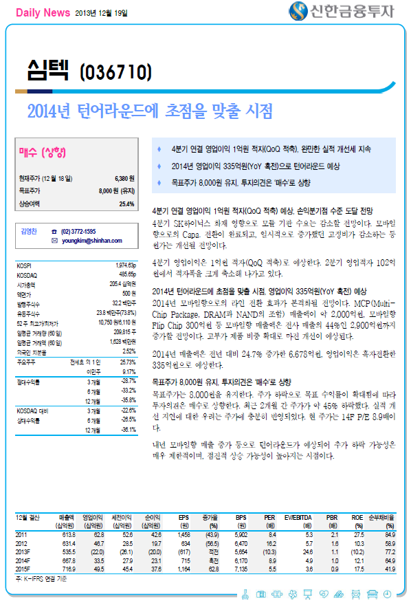 2014년 턴어라운드에 초점을 맞출 시점 - 신한금융투자