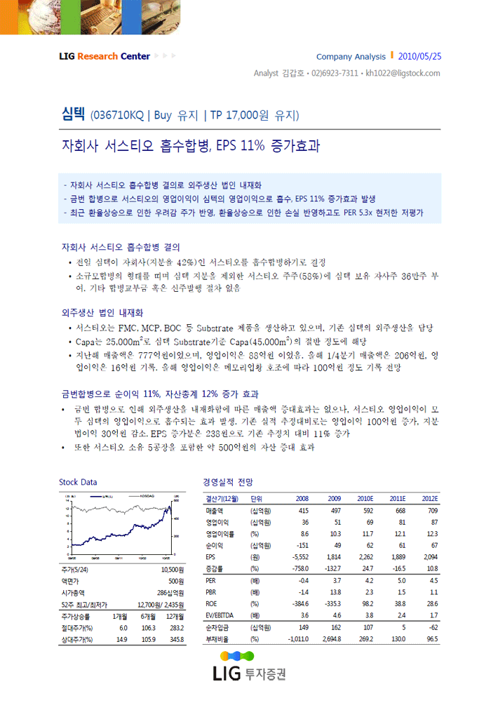換骨奪胎 스토리 : 심텍의 변신은 진행 중 - 동양종합금융증권